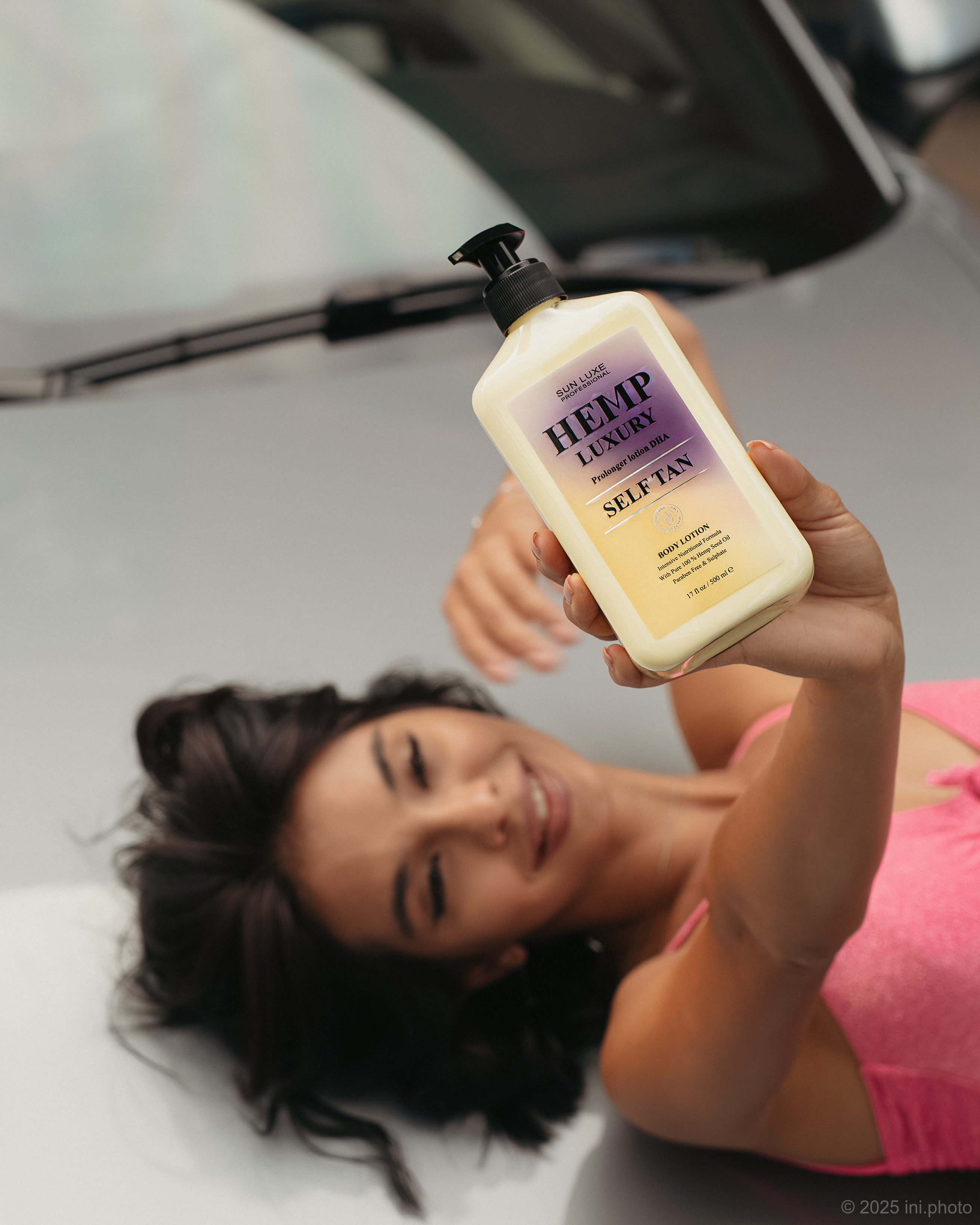 Девушка позирует для рекламы бренда кремов Sun Luxe